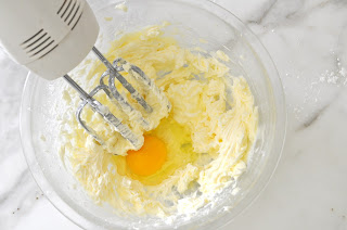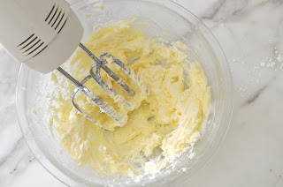 Cream the butter with the powdered sugar for several minutes, until fluffy and whipped. It's best to use an electric mixer for this part.