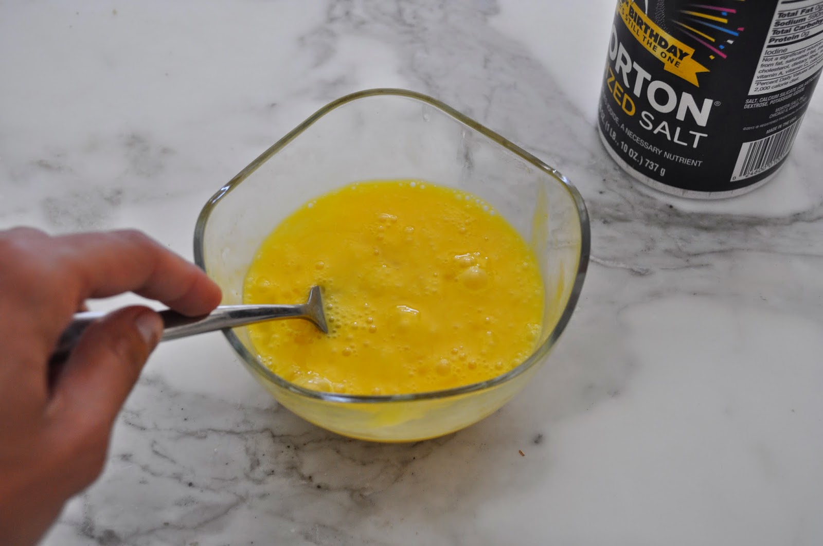 Step 3: In a bowl, beat the eggs with a bit of salt.
