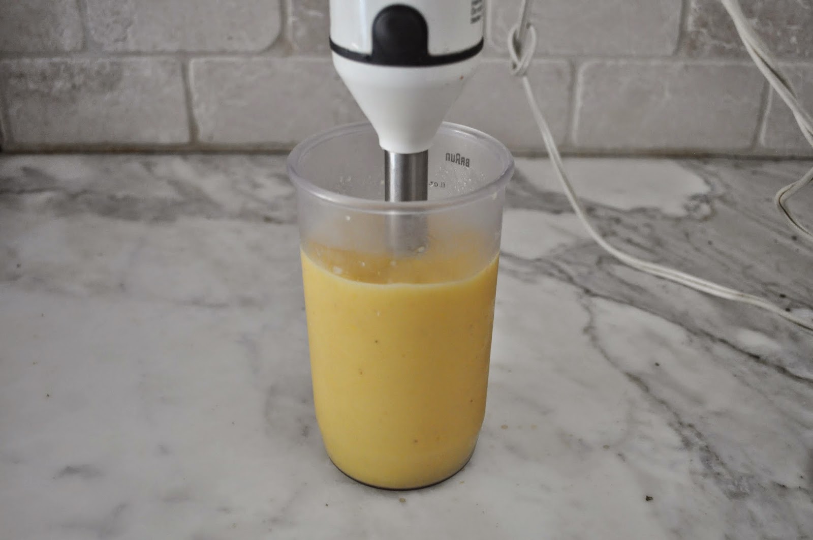 The secret to make this smoothie incredibly creamy without the addition of ice-cream, is to use frozen bananas and mango. I read this on Sally's Baking Addiction, one of my favorite food blog. I had to try it right away, and it really works! It's also a great idea to freeze bananas when they are ripe (but not completely mushy) and you know you won't have the chance to eat them. So, before it's too late, cut the bananas in pieces, place them in a bag, and store it in the freezer. With the warm weather coming up, you will for sure find a chance to use the frozen bananas, for a refreshing and satisfying fruit-packed smoothie.